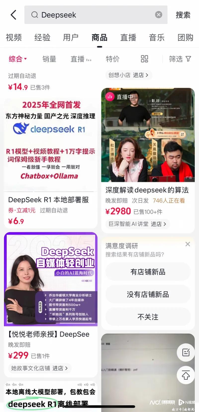 近期,社交平台、电商平台上出现了一系列以学习DeepSeek为噱头的课程,售价从十几元到千元不等。根据媒体报道,不少课程最终都会导向私域社群,并在其中推销高价课程和AI工具。